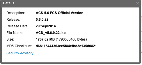 | ACS_v5.6.0.22.iso | 1.7 GiB | 2015-Apr-27 20:25 |