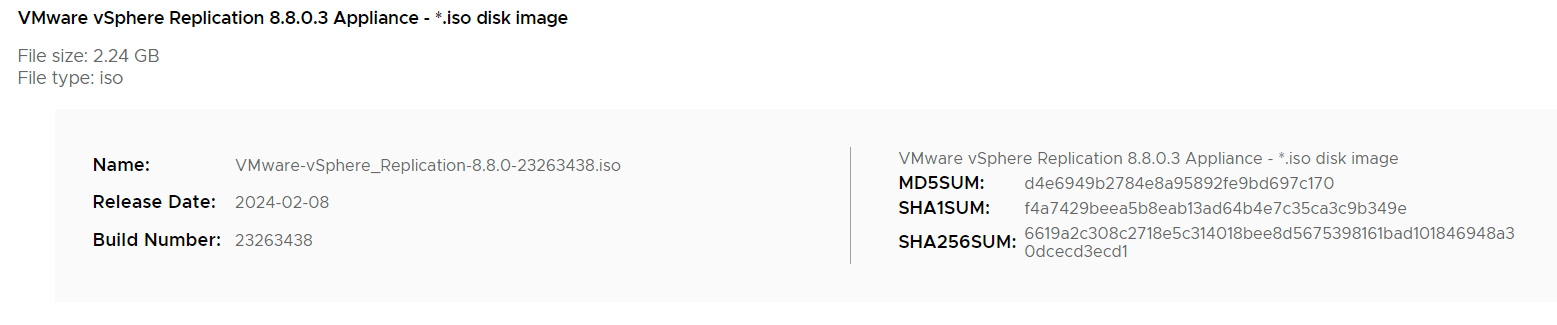 | VMware-vSphere_Replication-8.8.0-23263438.iso | 2.2 GiB | 2024-Feb-09 08:15 |