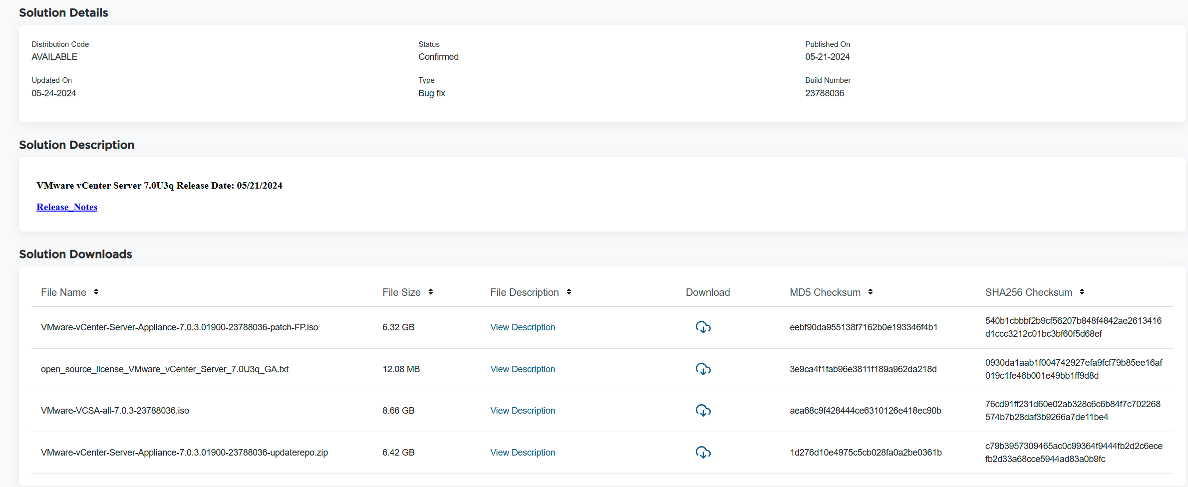 | vCenter Server 7.0U3q.b3sums | 581 B | 2024-Jun-07 15:44 |