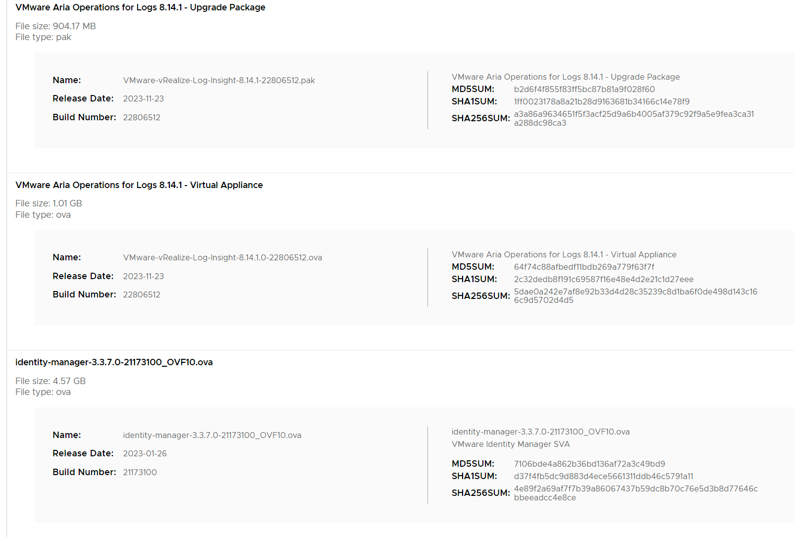 | VMware-vRealize-Log-Insight-8.14.1.0-22806512.ova | 1.0 GiB | 2023-Dec-01 23:44 |
